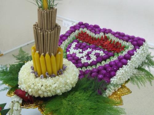 การเตรียมพานไหว้ครู สมัยก่อน ครูประจำชั้นของแต่ละห้องจะคัดเลือกนักเรียนที่เรียนดีและมีมารยาทเรียบร้อย ผู้ชายหนึ่งคนและผู้หญิงหนึ่งคนเป็นตัวแทนนำพานดอกไม้ไปไหว้ครู และในเย็นวันพุธจะมีการแบ่งหน้าที่กันว่า ในเช้าวันพฤหัสบดี นักเรียนคนใดจะต้องนำอะไรมาโรงเรียนบ้าง เช่น บางคนมีพานเงินหรือพานแก้วก็จะเป็นคนเอาพานมา บางคนเอาทรายหรือดินเหนียวมาใส่พานเพื่อปักดอกไม้ บางคนต้องเอาธูปเทียนมา ส่วนนักเรียนที่เหลือให้ไปช่วยกันหาดอกไม้มา โดยมีดอกไม้ที่กำหนด คือ ดอกมะเขือ หญ้าแพรก ดอกเข็ม และดอกไม้อื่นๆ เป็นต้น ตอนเช้าตรู่วันพฤหัสบดีซึ่งเป็นวันไหว้ครู เด็กๆ จะไปโรงเรียนเช้าเป็นพิเศษ เพื่อไปช่วยกันจัดพานดอกไม้ ซึ่งอาจมีการปัก ดอกบานไม่รู้โรย ดอกดาวเรือง ดอกกุหลาบบ้าน แซมด้วยหญ้าแพรกและดอกมะเขือ โดยที่พานดอกไม้นี้เด็กนักเรียนหญิงจะเป็นคนถือ ส่วนเด็กผู้ชายจะถือธูปเทียนและช่อดอกไม้ ( ช่อดอกไม้หมายถึงดอกไม้ที่หาได้แล้วเอามัดมารวมกัน แซมด้วยหญ้าแพรกและดอกมะเขืออีกเช่นกัน) จะเห็นว่าพิธีไหว้ครูแต่โบราณไม่มีพิธีรีตรองมากนัก แต่มีความหมายแฝงไว้มากมาย คนโบราณเป็นนักคิดจะทำอะไรก็มักจะผูกเป็นปริศนาที่ลึกซึ้งเอาไว้เสมอ ในพิธีไหว้ครูก็เช่นเดียวกันเครื่องสักการะที่ใช้ในการไหว้ครูนั้น นอกจากธูป เทียน แล้วยังมีข้าวตอก ดอกมะเขือ ดอกเข็ม และหญ้าแพรก ซึ่งเป็นของหาง่ายและมีความหมาย ความหมายของดอกไม้ต่างๆ ที่นิยมใช้ในการไหว้ครู ดอกมะเขือ เป็นดอกที่โน้มต่ำลงมาเสมอ ไม่ได้เป็นดอกที่ชูขึ้น คนโบราณจึงกำหนดให้เป็นดอกไม้สำหรับไหว้ครู ไม่ว่าจะเป็นครูดนตรี ครูมวย ครูสอนหนังสือ ก็ให้ใช้ดอกมะเขือนี้ เพื่อศิษย์จะได้อ่อนน้อมถ่อมตนพร้อมที่จะเรียนวิชาความรู้ต่างๆ นอกจากนี้มะเขือยังมีเมล็ดมาก ไปงอกงามได้ง่ายในทุกที่ เช่นเดียวกับหญ้าแพรก หญ้าแพรก เป็นหญ้าที่เจริญงอกงาม แพร่กระจายพันธ์ ไปได้อย่างรวดเร็วมาก หญ้าแพรกดอกมะเขือจึงมีความหมายซ่อนเร้นอยู่ คนโบราณจึงถือเอาเป็นเคล็ดว่า ถ้าใช้หญ้าแพรกดอกมะเขือไหว้ครูแล้ว สติปัญญาของเด็กจะเจริญงอกงามเหมือนหญ้าแพรกและ ดอกมะเขือนั่นเอง ข้าวตอก เนื่องจากข้าวตอกเกิดจากข้าวเปลือกที่คั่วด้วยไฟอ่อนๆ ให้ร้อนเสมอกันจนถึงจุดหนึ่งที่เนื้อข้างในขยายออก จนดันเปลือกให้แยกออกจากกัน ได้ข้าวสีขาวที่ขยายเม็ดออกบาน ซึ่งสามารถนำไปประกอบพิธีกรรม หรือทำขนมต่างๆได้ ดังนั้น ข้าวตอกจึงเป็นสัญลักษณ์ของความมีระเบียบวินัย หากใครสามารถทำตามกฎระเบียบ เอาชนะความซุกซนแ