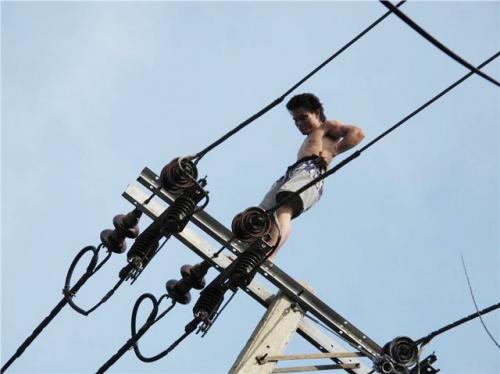 เครียดจัด! หนุ่ม รปภ.คลั่งปีนไปยืน-นั่งบนยอดเสาไฟฟ้าแรงสูงแยกประดิพัทธ์ สร้างความหวาดเสียวแก่ผู้พบเห็น ขณะตำรวจขึ้นกระเช้าเกลี้ยมกล่อม ดันถูกไฟช็อตหม้อแปลงระเบิด เพี้ยนนานครึ่งชั่วโมงจึงยอมลงมาแต่โดยดี นำส่ง รพ.รามาฯ แล้วอาการยังหนัก คิดว่าตัวเองเป็นน้องปอยฝ้าย มาลัยพร เพิ่งกลับจากอเมริกา มีเงินล้าน ร้องเพลงจั้งซี่มันต้องถอนตลอดเวลา