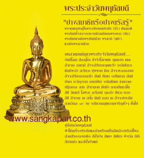 ไหว้พระ : ปางสมาธิ (พระประจำวันเกิด) มีกำลังเท่ากับ 19 (สวดแบบย่อ ภะ สัม สัม วิ สะ เท ภะ)