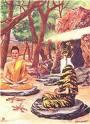 บำเพ็ญเพียรอยู่ริมฝั่งแม่น้ำคงคา บรรณศาลาของดาบสผู้พี่อยู่ทางเหนือน้ำ