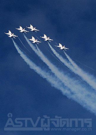 ประมวลภาพบรรยากาศการแสดงผาดแผลงของฝูงบิน Thunderbirds (วิหคสายฟ้า) จากสหรัฐอเมริกา ที่ บริเวณอาคารคลังสินค้า ท่าอากาศยานดอนเมือง เมื่อเวลา 13.00 น. วันที่ 10 ต.ค.ที่ผ่านมา ซึ่งมีประชาชนจำนวนมากให้ความสนใจเดินทางมาชมการแสดง