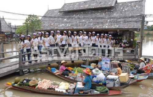 งานนี้ทำเอาเหล่าผู้เข้าประกวดออกอาการดี๊ด๊าที่จะได้เที่ยวกันแบบหนำใจ โดยมีการแบ่งแยกออกเป็น 2 กลุ่มคือ กลุ่มแรกจะลงเรือไปเยือนตลาดภาคอีสานและภาคใต้ ส่วนกลุ่มที่ 2 จะเดินทางไปไหว้พระ ต่อด้วยการไปเยือนตลาดภาคเหนือและภาคกลาง ซึ่งบรรยากาศในการเที่ยวชมนั้น เหล่าสาวงามต่างพากันเดินชิมอาหาร ชมและช็อปปิ้งกันอย่างสนุกสนาน จากนั้นจึงมุ่งหน้าเดินทางกลับกรุงเทพฯ เพื่อรอวันตัดเชือกชิงมงกุฎกันต่อไป