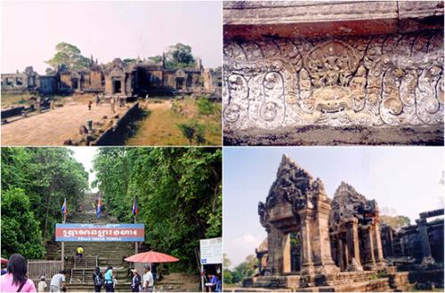 ภาพจากเว็บไซต์ซึ่งถ่ายเมื่อปี 2547 แสดงให้เห็นบันไดสำหรับเดินและปีนขึ้นสู่ปราสาททางฝั่งตะวันออกในดินแดนกัมพูชา ยังอยู่ในสภาพที่พอใช้การได้ ปัจจุบันกำลังบูรณะและสร้างขึ้นใหม่