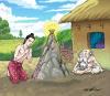 อยู่มาวันหนึ่ง สมเด็จพระร่วงเจ้าเสด็จไป ณ โรงช้าง ขึ้นทอดพระเนตรช้างพระที่นั่งอยู่บนเกย ทอดพระเนตรเห็นมะกะโทกวาดหญ้าช้างอยู่ จึงตรัสถามนายช้างว่า อ้ายคนนี้เป็นบุตรของผู้ใด นายช้างจึงกราบทูลสมเด็จพระร่วงเจ้าว่า มะกะโทคนนี้ เป็นบุตรรามัญเข้ามาอยู่ด้วยข้าพระพุทธเจ้า ช่วยทอดหญ้าช้างและชำระมูลช้าง มีความอุตสาหะเป็น อันมาก สมเด็จพระร่วงเจ้าทรงพระเมตตาแก่มะกะโท จึงตรัสสั่งนายช้างให้เลี้ยงดูมะกะโทไว้อย่าให้ขัดสน เมื่อพระองค์ทอดพระเนตรช้างอยู่นั้น คายพระสลาออก แล้วบ้วนพระโอษฐ์ลงเหนือแผ่นดิน ๆ กระจายออกไป ทอดพระเนตรเห็นเบี้ย ๆ หนึ่ง จึงตรัสว่าลูกรามัญน้อยจงเก็บเอาเบี้ย ๆ หนึ่งไว้ มะกะโทกราบถวายบังคมแล้วจึงเก็บเอาเบี้ยตามรับสั่ง ครั้นสมเด็จพระร่วงเจ้าทอดพระเนตรช้างแล้วก็เสด็จกลับเข้าสู่ พระราชวัง ฝ่ายมะกะโทได้เบี้ย ๆ หนึ่งก็มีความยินดีนัก จึงคิดว่าแต่เรามาอยู่ทำราชการด้วยนายช้าง พึ่งได้รับพระราชทานใน วันนี้ เบี้ย ๆ เดียวนี้จะทำกระไรดี อย่าเลยจะเอาไปซื้อพันธุ์ผักกาดมาปลูกไว้ มะกะโทคิดแล้ว จึงเอาเบี้ยไปซื้อพันธุ์ ผักกาด เจ้าของพันธุ์ผักกาดจึงว่าเบี้ยของเจ้าเบี้ยเดียวนี้ เรามิรู้ที่จะตวงพันธุ์ผักกาดให้ มะกะโทจึงว่าเบี้ยของเราเบี้ยนี้ เราเอาแต่พอติดนิ้วเดียว เจ้าของพันธุ์ผักกาดจึงว่าเอาเถอะ มะกะโทจึงเอานิ้วมือชุบเขฬะแล้วก็จิ้มลงในกระทายพันธุ์ ผักกาดนั้น ฝ่ายเจ้าของพันธุ์ผักกาดจึงสรรเสริญแต่ในใจว่า บุตรรามัญ ผู้นี้มีปัญญาฉลาดนัก นานไปจะได้เป็นผู้ดีมั่นคง