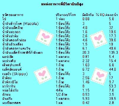 จะเห็นว่าวิตามินอี มีอยู่ในอาหารหลากหลายชนิด ดังนั้นถ้าได้เลือกรับประทานอาหารให้เหมาะสมกับ ความต้องการของร่างกายแล้ว...หนทางสู่การมีสุขภาพดีก็อยู่ไม่ไกลเกินเอื้อมค่ะ...