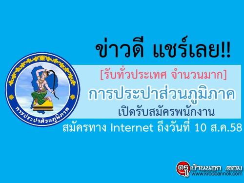ข่าวดี แชร์เลย!! [รับทั่วประเทศ จำนวนมาก] การประปาส่วนภูมิภาค เปิดรับสมัครพนักงานสมัครทาง Internet ถึงวันที่ 10 ส.ค. 58