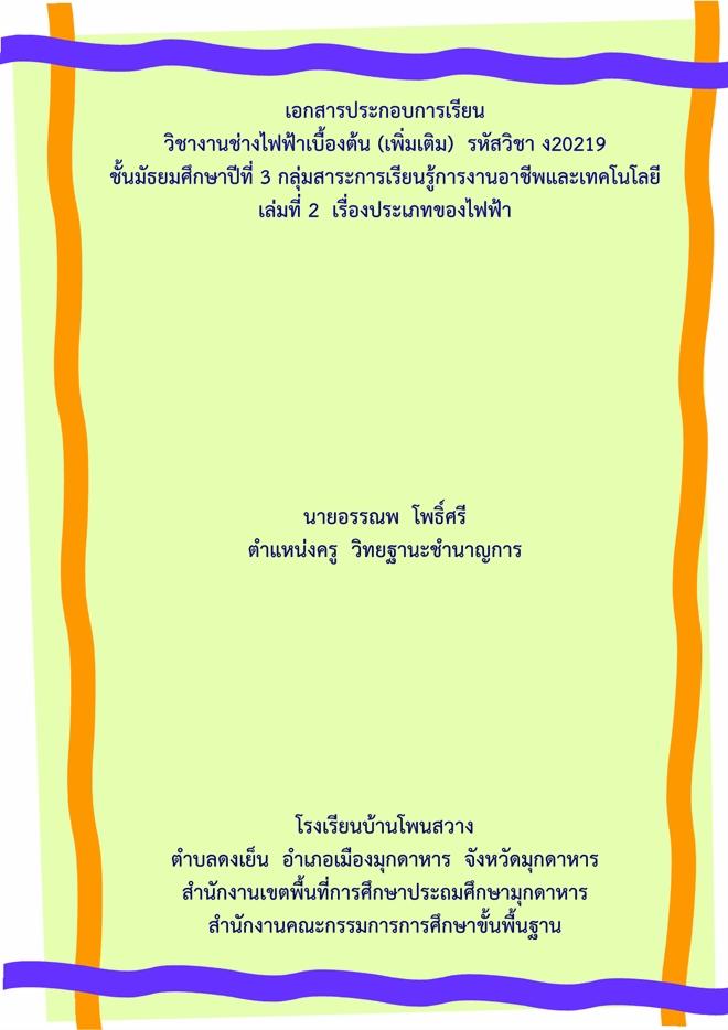 เอกสารประกอบการเรียน วิชางานช่างไฟฟ้าเบื้องต้น (((เพิ่มเติม))) ผลงานครูอรรณพ โพธิ์ศรี