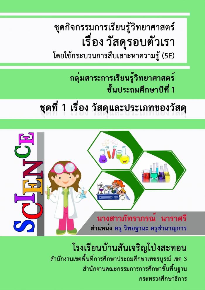ชุดกิจกรรมการเรียนรู้วิทยาศาสตร์ เรื่องวัสดุรอบตัวเรา โดยใช้กระบวนการสืบเสาะหาความรู้ (((5E))) ชั้นประถมศึกษาปีที่ 1 ผลงานครูภัทราภรณ์ นาราศรี