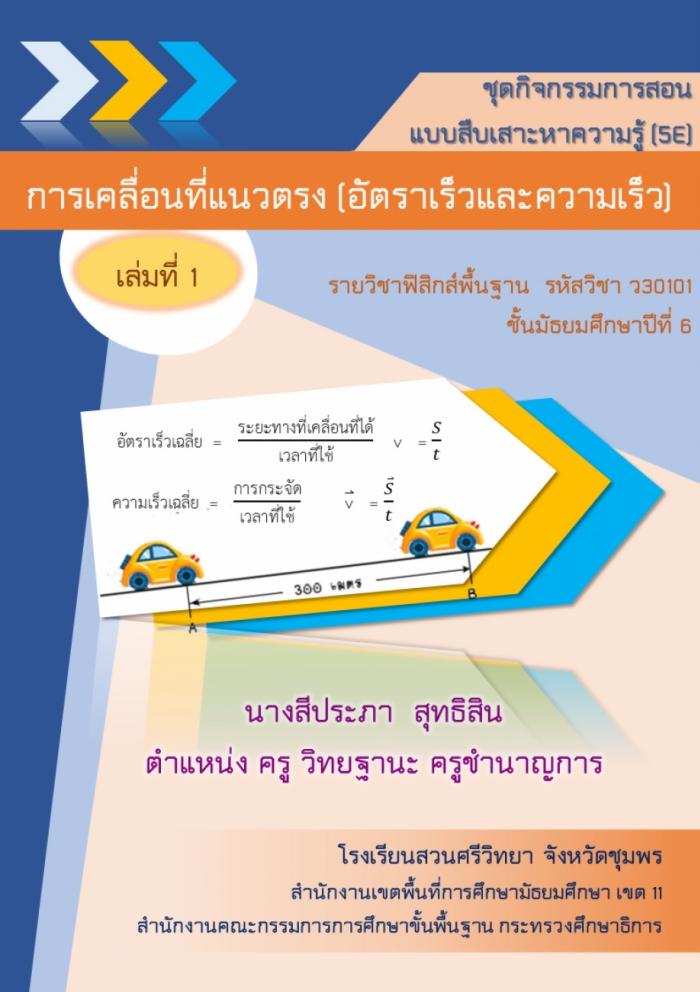 ชุดกิจกรรมการสอนแบบสืบเสาะหาความรู้ (((5E))) เรื่อง การเคลื่อนที่แนวตรง (อัตราเร็วและความเร็ว) ผลงานครูสีประภา สุทธิสิน