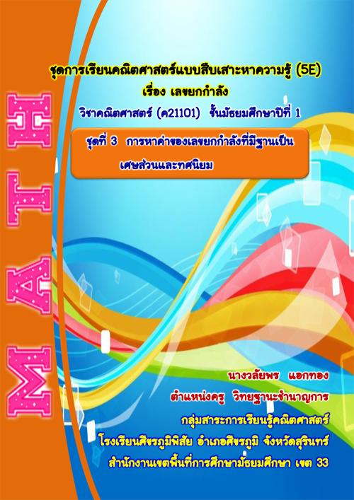 ชุดการเรียนคณิตศาสตร์แบบสืบเสาะหาความรู้ (((5E))) เรื่องเลขยกกำลัง ชุดที่ 3 เรื่อง การหาค่าของเลขยกกำลังที่มีฐานเป็นเศษส่วนและทศนิยม ผลงานครูวลัยพร แอกทอง