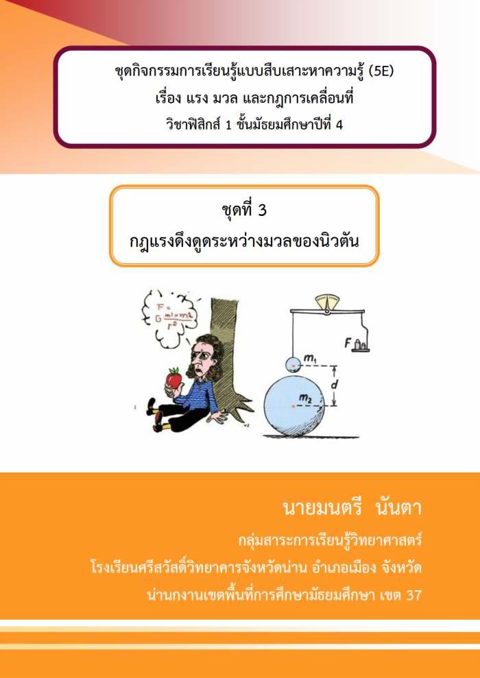 ชุดกิจกรรมการเรียนรู้แบบสืบเสาะหาความรู้ (((5E))) เรื่อง มวล แรง และกฎการเคลื่อนที่ ผลงานครูมนตรี นันตา