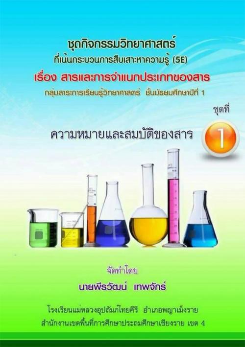 ชุดกิจกรรมวิทยาศาสตร์ ที่เน้นกระบวนการสืบเสาะหาความรู้ (((5E))) เรื่องสารและการจำแนกประเภทของสาร ผลงานครูพีรวัฒน์ เทพจักร์