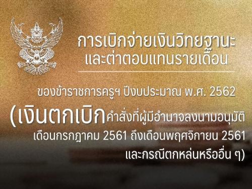 การเบิกจ่ายเงินวิทยฐานะและต่าตอบแทนรายเดือนของข้าราชการครูฯ ปีงบประมาณ พ.ศ. 2562 (เงินตกเบิกกรกฎาคม-พฤศจิกายน 2561 และกรณีตกหล่นหรืออื่นๆ)