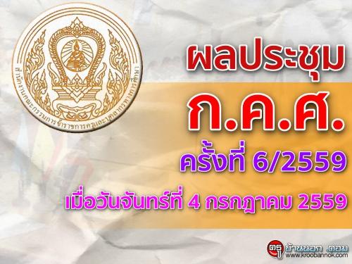 ผลประชุม ก.ค.ศ. ครั้งที่ 6/2559 เมื่อวันจันทร์ที่ 4 กรกฎาคม 2559