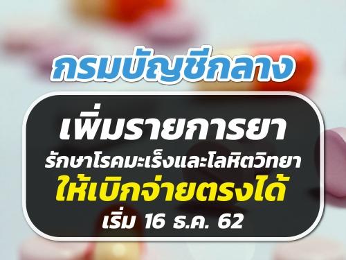 กรมบัญชีกลางเพิ่มรายการยารักษาโรคมะเร็งและโลหิตวิทยาให้เบิกจ่ายตรงได้ เริ่ม 16 ธ.ค. 62