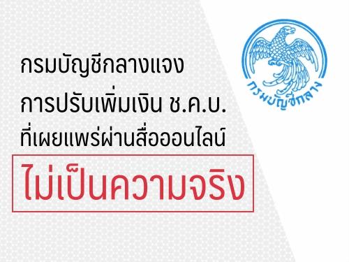 กรมบัญชีกลางแจงการปรับเพิ่มเงิน ช.ค.บ. ที่เผยแพร่ผ่านสื่อออนไลน์ไม่เป็นความจริง