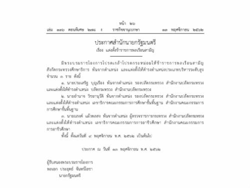 ประกาศสำนักนายกรัฐมนตรี เรื่อง แต่งตั้งข้าราชการพลเรือนสามัญ (กระทรวงศึกษาธิการ)