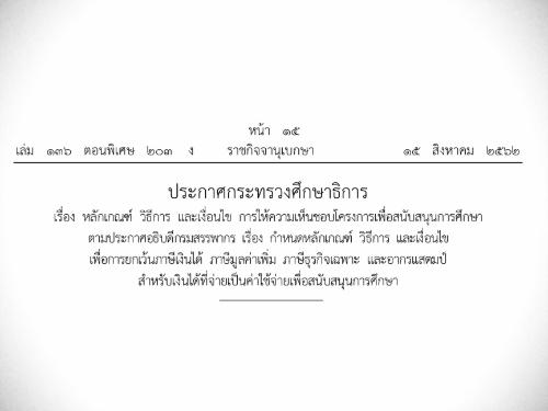 ประกาศกระทรวงศึกษาธิการ เรื่อง หลักเกณฑ์ วิธีการ และเงื่อนไข การให้ความเห็นชอบโครงการเพื่อสนับสนุนการศึกษา