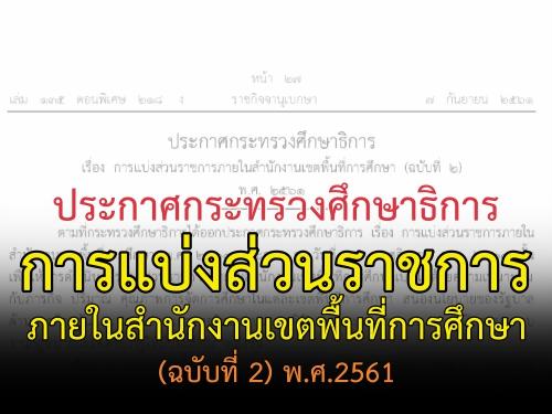 ประกาศกระทรวงศึกษาธิการ เรื่อง การแบ่งส่วนราชการภายในสำนักงานเขตพื้นที่การศึกษา (ฉบับที่ 2) พ.ศ.2561