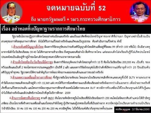 จดหมายฉบับที่ 52 ถึงนายกรัฐมนตรี+รัฐมนตรีว่าการกระทรวงศึกษาธิการ