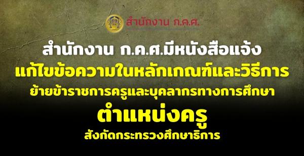 ก.ค.ศ.แก้ไขข้อความในหลักเกณฑ์และวิธีการย้ายข้าราชการครูและบุคลากรทางการศึกษา ตำแหน่งครู สังกัดกระทรวงศึกษาธิการ