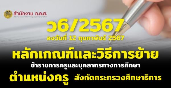 ว6/2567 หลักเกณฑ์และวิธีการย้ายข้าราชการครูและบุคลากรทางการศึกษา ตำแหน่งครู สังกัดกระทรวงศึกษาธิการ
