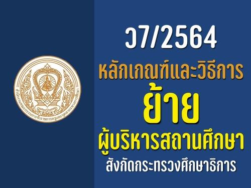 ว7/2564 หลักเกณฑ์และวิธีการย้ายผู้บริหารสถานศึกษา สังกัดกระทรวงศึกษาธิการ