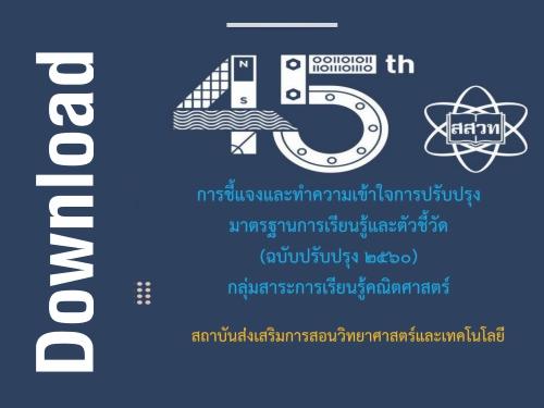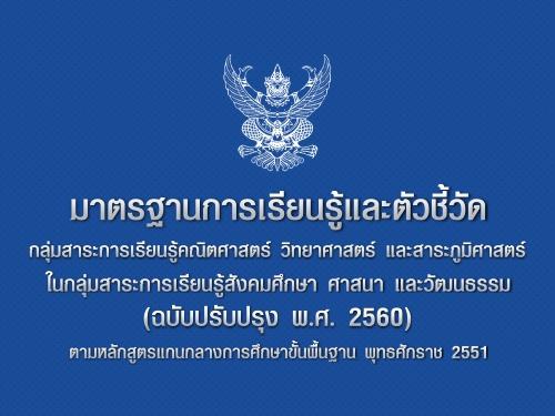 มาตรฐานการเรียนรู้และตัวชี้วัด กลุ่มสาระการเรียนรู้คณิตศาสตร์ วิทยาศาสตร์ และสาระภูมิศาสตร์ในกลุ่มสาระการเรียนรู้สังคมศึกษา ศาสนา และวัฒนธรรม(2560)