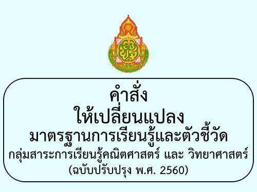 คำสั่ง เรื่อง ให้เปลี่ยนแปลงมาตรฐานการเรียนรู้และตัวชี้วัดกลุ่มสาระการเรียนรู้คณิตศาสตร์ และ วิทยาศาสตร์ (ฉบับปรับปรุง พ.ศ. 2560)