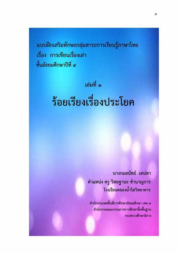 แบบฝึกเสริมทักษะกลุ่มสาระการเรียนรู้ภาษาไทย ม.4 การเขียนเรื่องเล่า ผลงานครูกมลนัทธ์ เสน่หา
