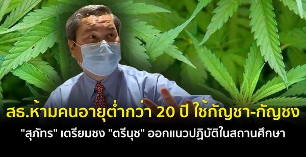 สธ.ห้ามคนอายุต่ำกว่า 20 ปี ใช้กัญชา-กัญชง "สุภัทร" เตรียมชง "ตรีนุช" ออกแนวปฏิบัติในสถานศึกษา