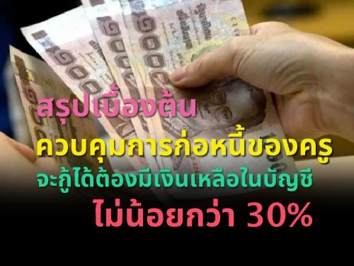 สรุปเบื้องต้น ควบคุมการก่อหนี้ของครู จะกู้ได้ต้องมีเงินเหลือในบัญชีไม่น้อยกว่า 30%