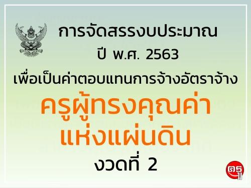การจัดสรรงบประมาณปี พ.ศ. 2563 เพื่อเป็นค่าตอบแทนการจ้างอัตราจ้างครูผู้ทรงคุณค่าแห่งแผ่นดิน งวดที่ 2