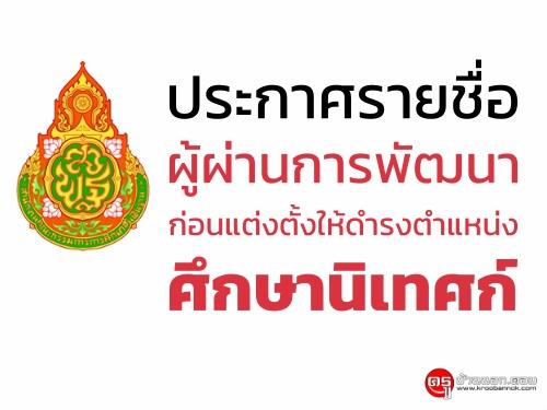 ประกาศรายชื่อผู้ผ่านการพัฒนาข้าราชการครูและบุคลากรทางการศึกษาก่อนแต่งตั้งให้ดำรงตำแหน่งศึกษานิเทศก์