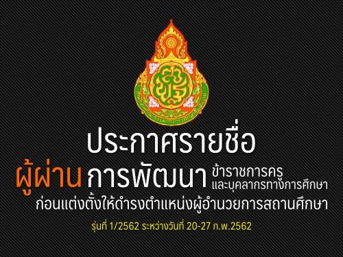 ประกาศรายชื่อผู้ผ่านการพัฒนาข้าราชการครูและบุคลากรทางการศึกษาก่อนแต่งตั้งให้ดำรงตำแหน่งผู้อำนวยการสถานศึกษา