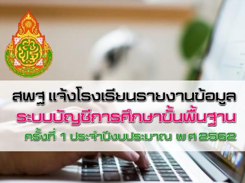 สพฐ.แจ้งให้โรงเรียนรายงานข้อมูล ระบบบัญชีการศึกษาขั้นพื้นฐาน ครั้งที่ 1 ประจำปีงบประมาณ พ.ศ.2562