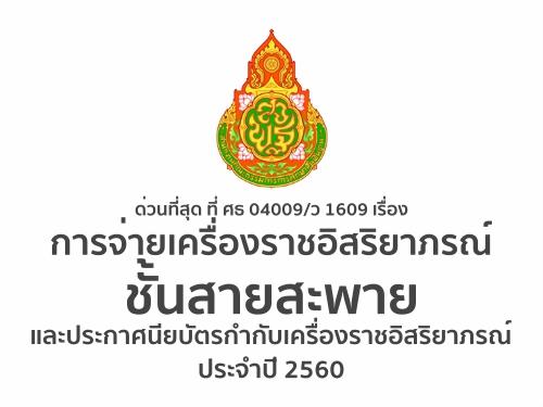 การจ่ายเครื่องราชอิสริยาภรณ์ชั้นสายสะพายและประกาศนียบัตรกำกับเครื่องราชอิสริยาภรณ์ ประจำปี 2560