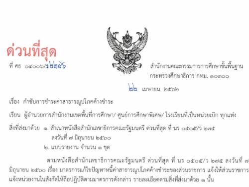 สพฐ.กำชับการชำระค่าสาธารณูปโภคค้างชำระ