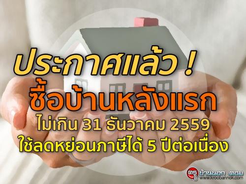 ประกาศแล้ว! ซื้อบ้านหลังแรกไม่เกิน 31 ธันวาคม 2559 ใช้ลดหย่อนภาษีได้ 5 ปีต่อเนื่อง