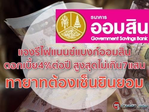 แจงรีไฟแนนซ์แบงก์ออมสินดอกเบี้ย4%ต่อปี สูงสุดไม่เกิน7แสน ทายาทต้องเซ็นยินยอม