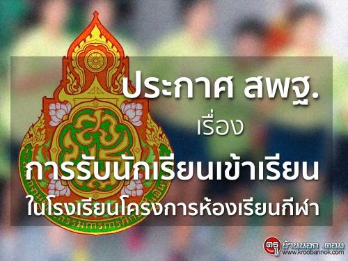 ประกาศสำนักงานคณะกรรมการการศึกษาขั้นพื้นฐานเรื่อง การรับนักเรียนเข้าเรียนในโรงเรียนโครงการห้องเรียนกีฬา