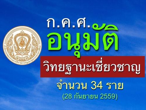 ก.ค.ศ. อนุมัติให้ข้าราชการครูและบุคลากรทางการศึกษามีและเลื่อนเป็นวิทยฐานะเชี่ยวชาญ จำนวน 34 ราย