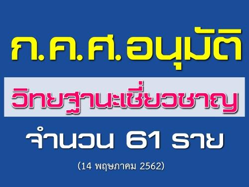 ก.ค.ศ. อนุมัติให้ข้าราชการครูและบุคลากรทางการศึกษามีและเลื่อนเป็นวิทยฐานะเชี่ยวชาญ 61 ราย (21 มิ.ย.62)