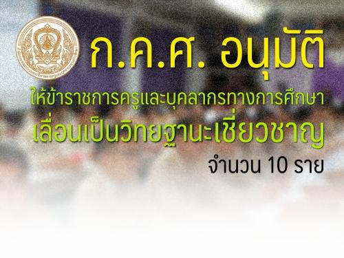ก.ค.ศ. อนุมัติให้ข้าราชการครูและบุคลากรทางการศึกษาเลื่อนเป็นวิทยฐานะเชี่ยวชาญ จำนวน 10 ราย