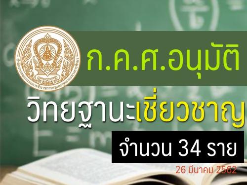 ก.ค.ศ.อนุมัติให้ข้าราชการครูและบุคลากรทางการศึกษามีและเลื่อนเป็นวิทยฐานะเชี่ยวชาญ 34 ราย