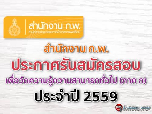 สำนักงาน ก.พ. ประกาศรับสมัครสอบเพื่อวัดความรู้ความสามารถทั่วไป (ภาค ก) ประจำปี 2559