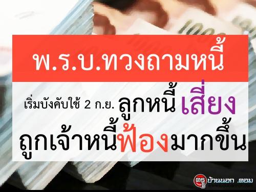 พ.ร.บ.ทวงถามหนี้ เริ่มบังคับใช้ 2 ก.ย. ลูกหนี้เสี่ยงถูกเจ้าหนี้ฟ้องมากขึ้น
