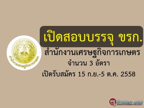 สำนักงานเศรษฐกิจการเกษตร เปิดสอบแข่งขันรับสมัครบุคคลเป็นข้าราชการ จำนวน 3 อัตรา เปิดรับสมัคร 15 ก.ย.-5 ต.ค. 2558