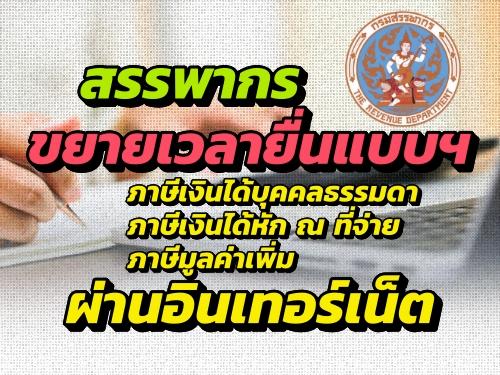 สรรพากรขยายเวลายื่นแบบฯ ภาษีเงินได้บุคคลธรรมดา ภาษีเงินได้หัก ณ ที่จ่าย และภาษีมูลค่าเพิ่ม ผ่านอินเทอร์เน็ต