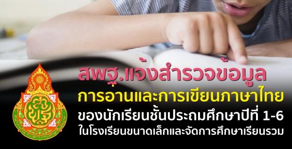 สำรวจข้อมูลการอ่านและการเขียนภาษาไทยของนักเรียนชั้นประถมศึกษาปีที่ 1-6 ในโรงเรียนขนาดเล็กและจัดการศึกษาเรียนรวม